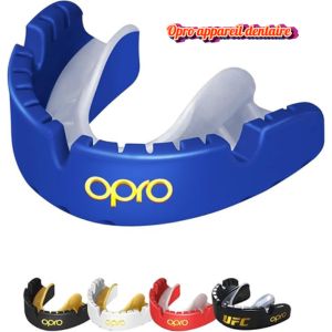 | Protège-dents OPRO Gold | Moulable (Ailettes brevetées) | Professionnel | ✅ Anti-bactérien, ✅ Respirable | Athlètes exigeants. |